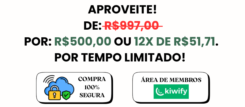 Todas as aulas serão gravadas e ficarão disponíveis dentro da Plataforma de Cursos Kiwify, para que possa assistir sempre que desejar.